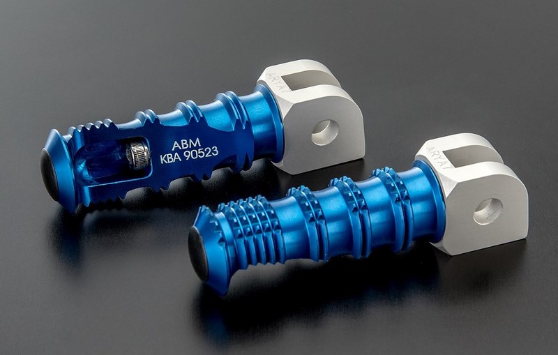 The ABM-set of exchange footrests for motorcycles consists of footrests called rGrip and model-specific fold up brackets.