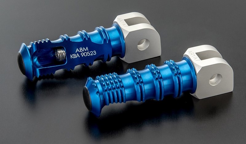 The ABM-set of exchange footrests for motorcycles consists of footrests called rGrip and model-specific fold up brackets.