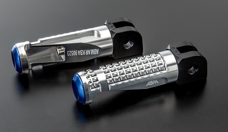 The ABM-set of exchange footrests for motorcycles consists of footrests called rGripEvo and model-specific fold up brackets.