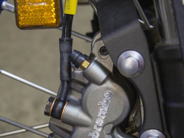 特許取得済みのブリーダーにはチェックバルブが内蔵されており、一人でブレーキの血抜きを行うことができる。