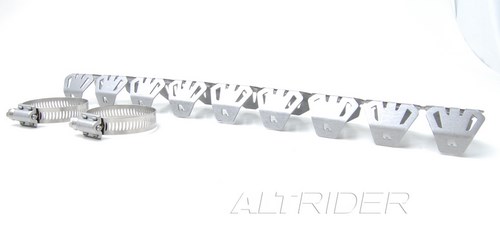 This piece offers protection and an aggressive look to your machine. To ensure perfect fit, the AltRider Header Guard was designed to be easily conformed to the contours of each header pipe before attaching with the included stainless hose clamps