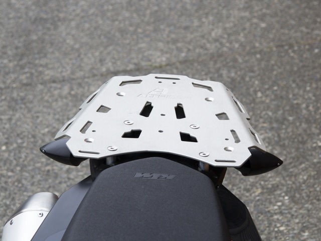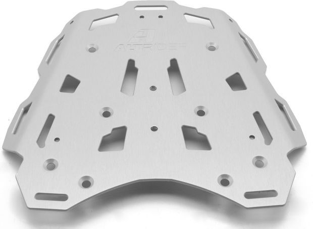 The unique AltRider design can be mounted in multiple positions to suit your luggage needs. Bolt it directly to the factory rack to create a larger, more versatile platform for your gear. The rack can also replace the OEM rack, bringing your load and center of gravity closer to the ground. Finally the luggage rack can be mounted without the factory rack or passenger grab handles " allowing you to combine it with the AltRider Pillion Rack to create a flat, continuous luggage surface. All AltRider luggage racks directly integrate with RotopaX fuel packs, RAM mounts and Givi top cases (requires Givi top case mounting kit " sold separately). The rack is laser cut from 3/16 inch (4.8 mm) aluminum with CNC-routered edges that won't cut your straps. Hardware is completely recessed " there's nothing to catch on your luggage. The versatile design features strategically placed cutouts to maximize tie-down points without sacrificing strength. Learn more about how AltRider Luggage Racks are developed in our blog post Hooked: How We Developed Our Luggage Racks.