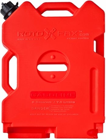 All of the gas containers Rotopax manufactures for the United States are molded using their patented three layer design. This state of the art molding technique exceeds the EPA (Environmental Protection Agency) and CARB (California Air and Research Board) requirements. Making Rotopax the only Rotational molded EPA and CARB compliant container on the market. The Rotopax Gas containers are offered in various sizes depending on your needs; 1 gallon, 1.75 gallon, and 2 gallon. Remember to vent the pax regularly.