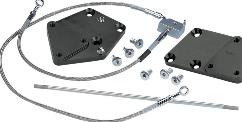 3" Foot Control Extension KitMove the OEM controls forward almost 3" for a more comfortable riding positionKits include black anodized billet aluminum adapter plates, extended stainless-steel rear brake line, extended shifter rod, and necessary hardwareUse stock footpegs, brake lever, shift lever and shift armMade in the U.S.A.PART #1601-0206 does not include kickstand spring pin.