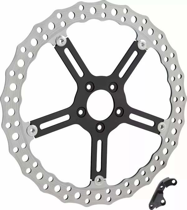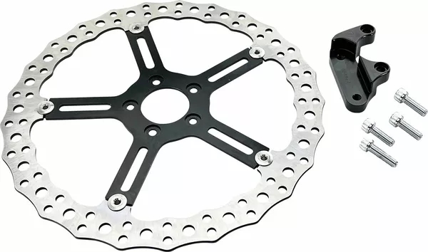 簡単なキットには、フローティングローター、ブレーキキャリパーアダプターブラケット、必要なクロームハードウェアが含まれています。