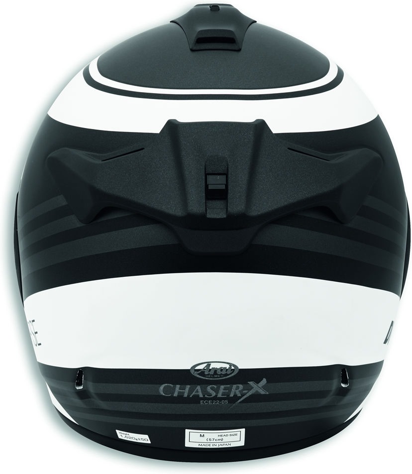 ドゥカティ・コルセSBK 3ヘルメットは、Arai Chaser-Xをベースに、ベンチレーションシステムを一新し、VASバイザーの導入により視野角を拡大しました。スーパーファイバー製のシェルは頑丈かつ軽量で、内部のチークパッドは顔にぴったりとフィットし、取り外して洗える内装は快適性に優れています。ドゥカティのためにDrudi Performanceが特別に開発したデザインは、レーストラックの雰囲気を即座に思い起こさせます。ヘルメットのカラーは、マット仕上げのブラックとグレーがあります。スポーツマン、スポーツウーマンに捧ぐ。
