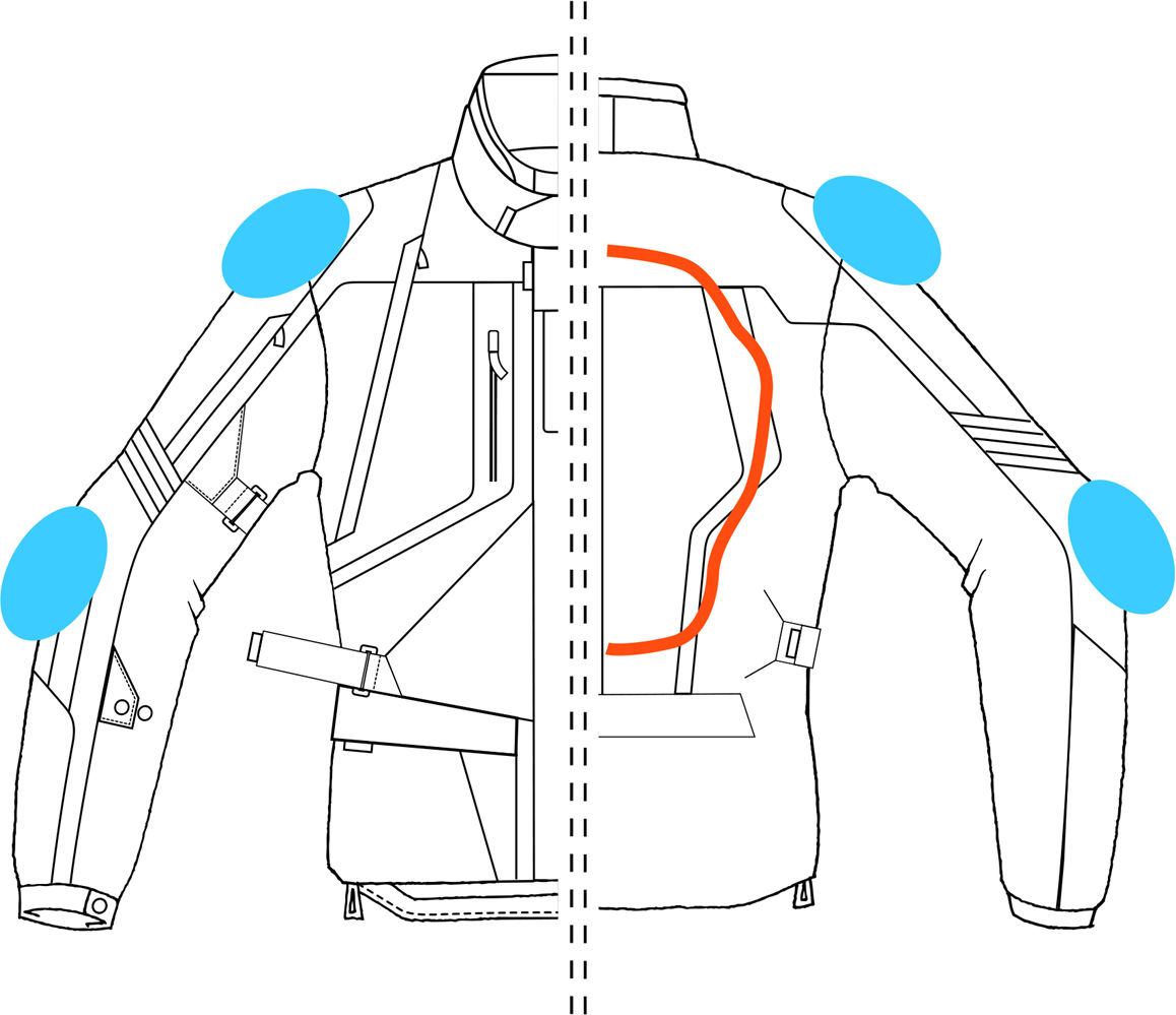 前身頃に2個、後身頃に2個、袖に2個の通気口を装備