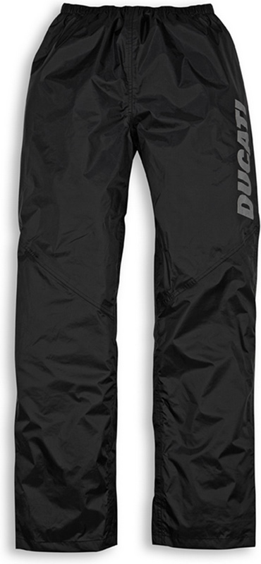 These rain-proof trousers are a mix of lightness, resistance and practicality; they can be matched with the jackets of the same line in order to complete a perfect Ducati look also during the rainy season. Made with PVC-free polyamide, resistant to a 10,000 mm water column and fitted with inner heat-sealed seams to ensure top-level waterproof performance. Great comfort thanks to the stretch waist and the adjustable bottom. Extremely practical, quick to wear and easy to pack back in the supplied pouch. The reflex print applied on the left leg increases safety in poor visibility conditions. The perfect item for riders who are never afraid, even of the most challenging weather.