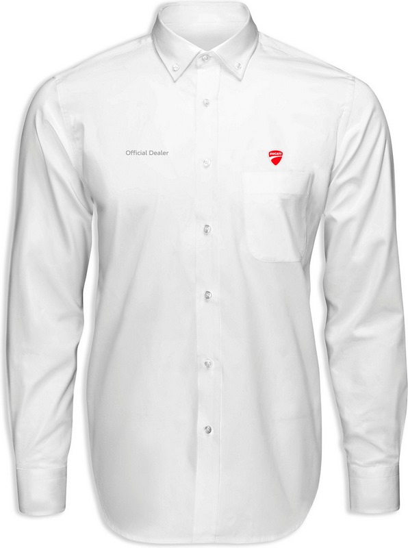 Exclusive button-down shirt, with a casual and at the same time refined look. Maximum functionality and excellent comfort, thanks to the practical pocket on the front and the 100% cotton composition. Patch with shield on the front and Italian flag with logo on the back, to give grit and character to even the most formal work occasions with unmistakable Ducati style.
