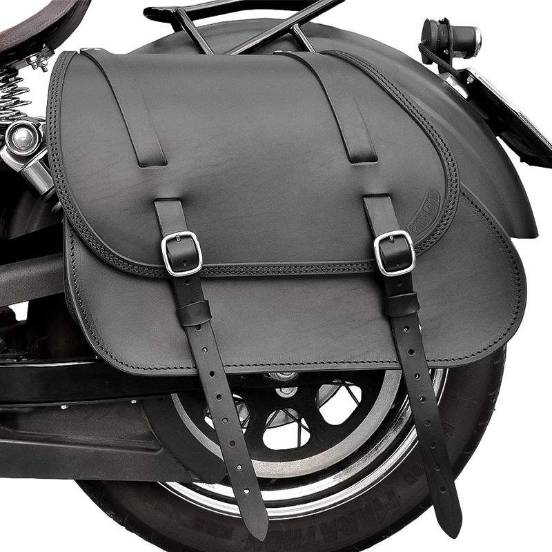 Little Dyna is a large premium leather saddlebag specifically designed for 2004-2017 Harley-Davidson® Dyna® Street Bob®, Super Glide®, Wide Glide®, Fat Bob®, Switchback®, Low Rider® and Low rider S® models. Little Dyna can be ordered with a detachable system that allows to place it and remove it from the motorcycle with a simple gesture.