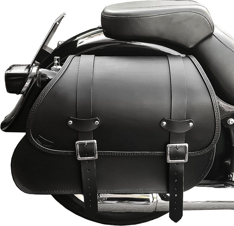 2000年から2017年のハーレーダビッドソン®ソフテイル®モデル(ブレイクアウト®、スリム®、ブラックライン®を除く)専用にデザインされた、植物タンニンなめし革を使ったハンドメイドの大型バッグです。スイングアームやアクスルナットへの衝撃を避けるための革新的なカットアウトにより、Skaはバイクのフェンダーにできるだけ近い位置に設置することができます。