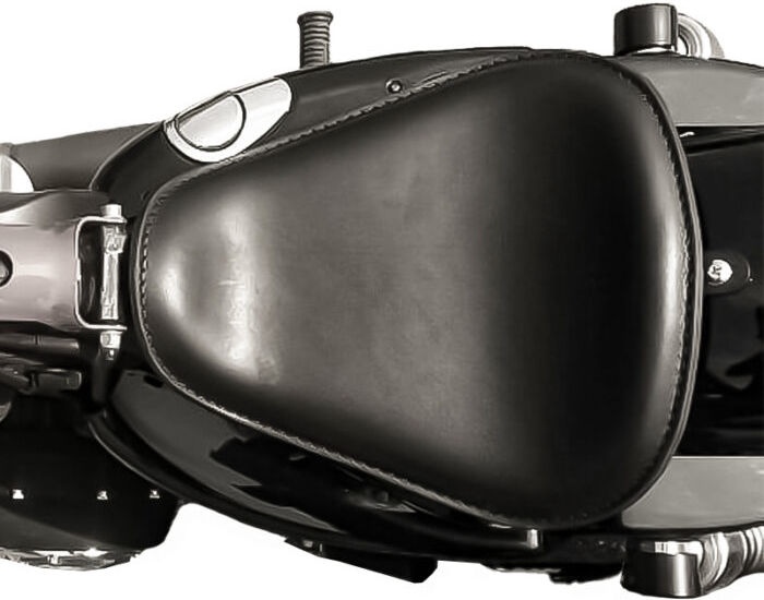 This seat represents the perfect balance between sleek look and comfort. Its lines perfectly match these motorcycles silhouette, enhancing Sportster models look and providing an outstanding riding experience. Solo Low is handcrafted using an iron base, padded with high density foam and wrapped with 2 mm thick vegetable tanned leather. Choosing gel & memory foam padding would improve Solo Low comfort by absorbing more vibrations and better adapting to the rider’s body.