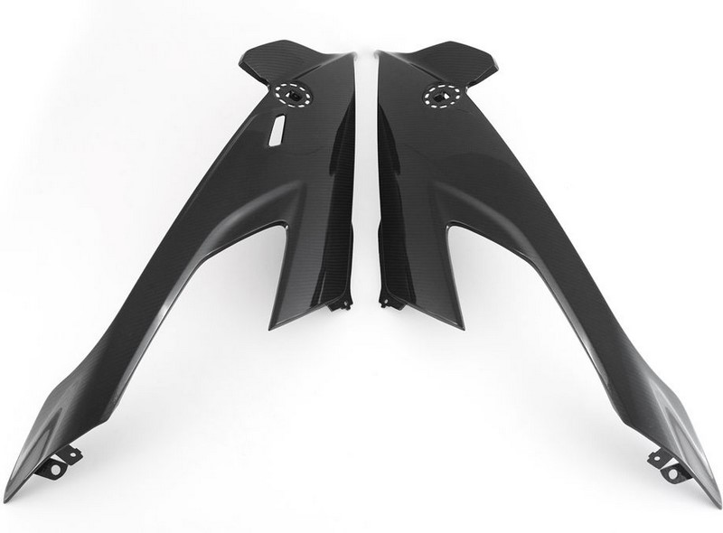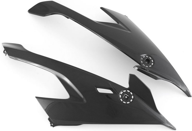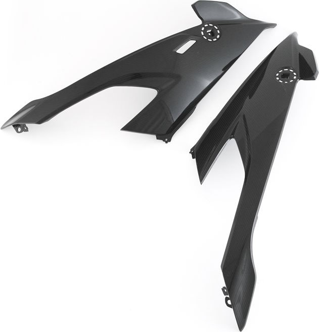 The FAIRING SIDE PANEL - SET for BMW S 1000RR is a carbon fiber component that replaces the OEM part and enhances both the visual appearance and performance of your motorcycle. See below for which materials and surface treatments are available. SWINGARM GUARD - SET TANK COVER FRAME COVER - SET FRONT MUDGUARD REAR MUDGUARD CHAIN GUARD FAIRING COVER - SET SPROCKET COVER ALTERNATOR COVER CLUTCH COVER FUEL TANK HEEL GUARDS - SET TANK FAIRING - SET BELLY PAN CARBON WINDSCREEN - LIGHT DARK ELECTRONIC COVER CARBON WINDSCREEN - CLEAR SIDE STAND