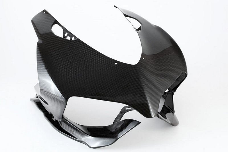 The HEADLIGHT FAIRING STRADA for DUCATI 1199.S is a carbon fiber component that replaces the OEM part and enhances both the visual appearance and performance of your motorcycle. See below for which materials and surface treatments are available. HEEL GUARDS PAIR (no holes) HEEL GUARDS PAIR REAR BRAKE RESERVOIR MOUNT SIDE STAND RADIATOR FAIRING COVER FAIRING SIDE PANEL - LOWER LEFT FAIRING SIDE PANEL - LOWER RIGHT FAIRING SIDE PANEL - UPPER LEFT FAIRING SIDE PANEL - UPPER RIGHT AIRTUBE COVERS SEAT / TAIL AIR INTAKE SET SEAT / TAIL INSERTS HEADLIGHT FAIRING STRADA HEADLIGHT FAIRING STRADA EXTENSION - SET AIR INTAKE MANIFOLD - OEM LED 1199S AIR INTAKE - OEM SET AIR INTAKE MANIFOLD - OEM AIR INTAKE MANIFOLD COVER - OEM