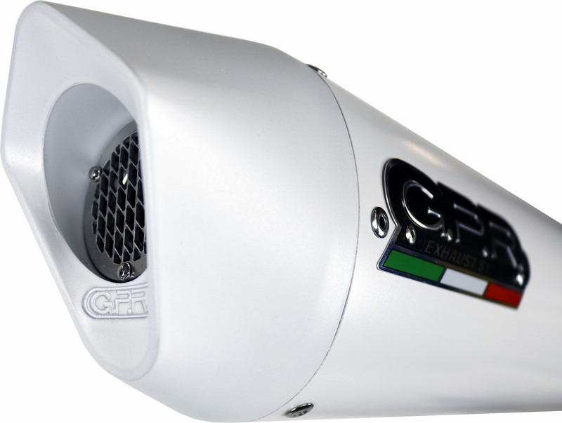 GPR排気システムが取り外し可能とキットスリップオンアムステルダムのAlbus白いアルビノを公認しました使用レース用DBキラー(バッフル)消音器本体は、セラミック治療白色アルビノアルミニウム製ながら、それは特定のリンクパイプ、ブラケット、ホルダーとファスナー、リンクパイプからなるステンレス鋼(AISI 304)及びErgal製のCNCの機械によって行われたキャップを含む改善します最高レベルの温暖化と耐振動性に。 。 GPRからモトGP及びSBKレースの経験のおかげで開発し、システムは楕円形、DIAMがあります。 90x120mm、先のバイクから垂下1.75 kgから約培地重量。 GPRは、元のホモロゲ文書や図面やビデオや写真帳として使用可能な命令を提供しています。アイテムは公認構成で使用されている場合、それはマッピングを必要としない、それは可能使用パニアと中央のスタンドで、SONDAラムダボスは、必要なときに含まれています。利用可能な多くのサウンドファイルや写真ギャラリー、製品は欧州指令の下で生産イタリア製手、ある、それは公道であり、それは国際保証の2年を持っています