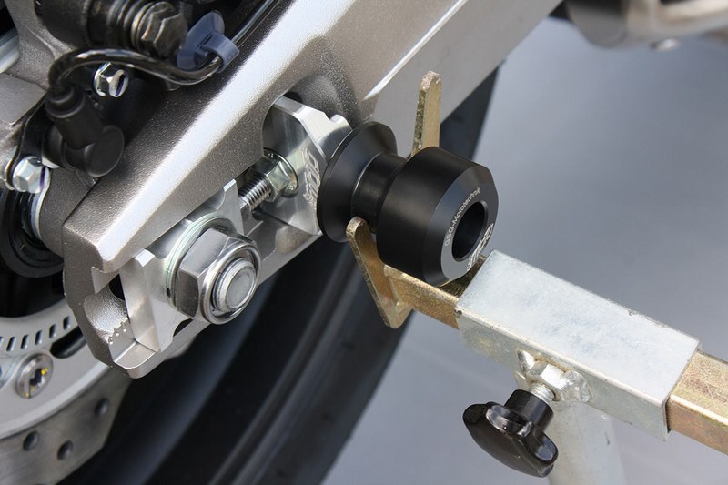 ジャッキアップとホイールの取り外しが簡単にできます。ベースキャリアはスイングアームプロファイルにロックされ、チェーンテンショニングスクリューで固定されます。