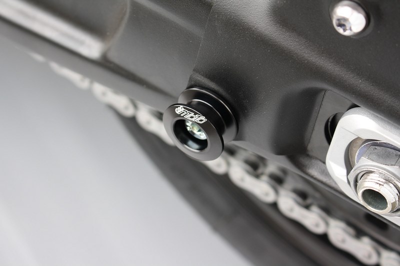 The bobbins also protect the axle area and the swing arm (swing arm protection) of your bike - and they also look really good.
