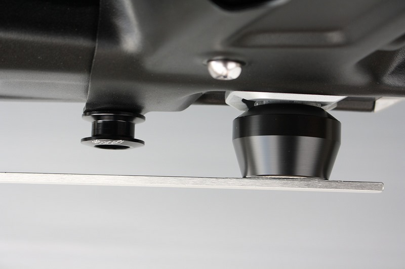 With our GSG aluminum bobbins / motorcycle stand mounts, your bike can be jacked up safely and easily for all assembly work, or placed and set up perfectly in position.