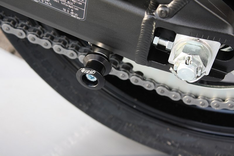 The bobbins also protect the axle area and the swing arm (swing arm protection) of your bike - and they also look really good.