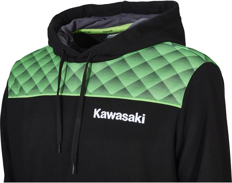 For the tougher look, this unisex Kawasaki Sports Hoody lets you play the part well. We've added embroidered Kawasaki logos and a pattern printed shoulder area front and back. At the same time, the cotton and polyester blend will keep you warm on a chilly summer night or winter morning.