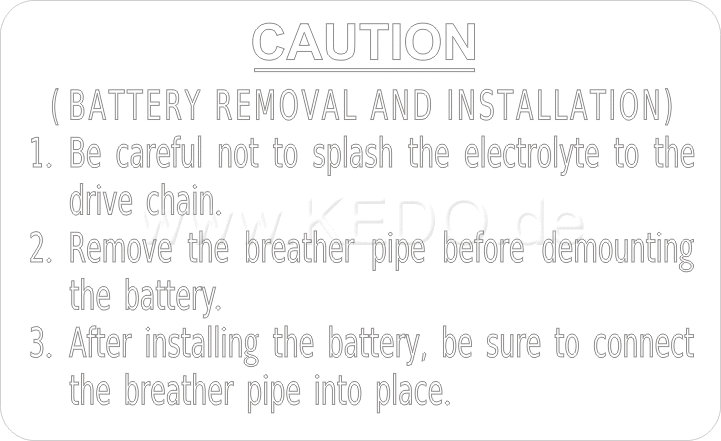 Kedo Indicating Label 'Battery Removal and Installation), transparent background, white lettering, inside LH side cover, size 61x37mm with protection movie | 21289W