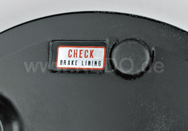 Decal> Check Brake Lining << br /> Originally Placed Onto the rear brake plate