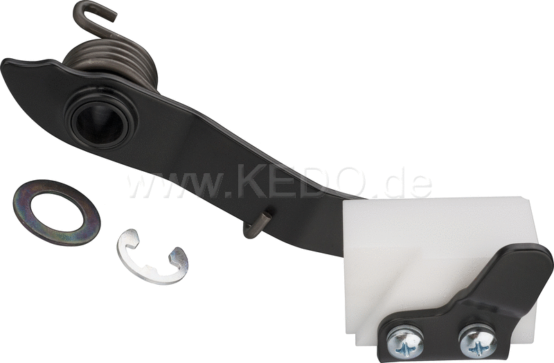 Kedo Chain Tensioner Set, complete incl spring, slider and small parts, tensioner arm stainless steel powder coated. | 28603