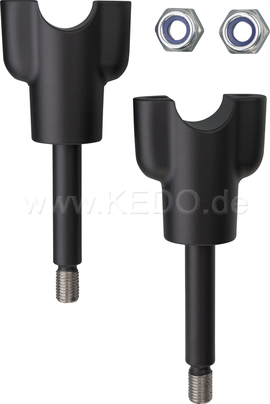 Kedo Handlebar "riser" in original Optics with + 30mm elevation, CNC milled from high tensile tempered steel, black powder coated, 1 pair | 30142