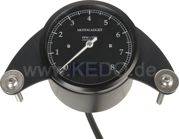 displaying speedometer - and additional information in the dark LC display, control lights for turn signals, high beam, neutral and oil pressure; Supplied with M5 speedometer sensor with 150 cm connecting cable and installation and operating instructions