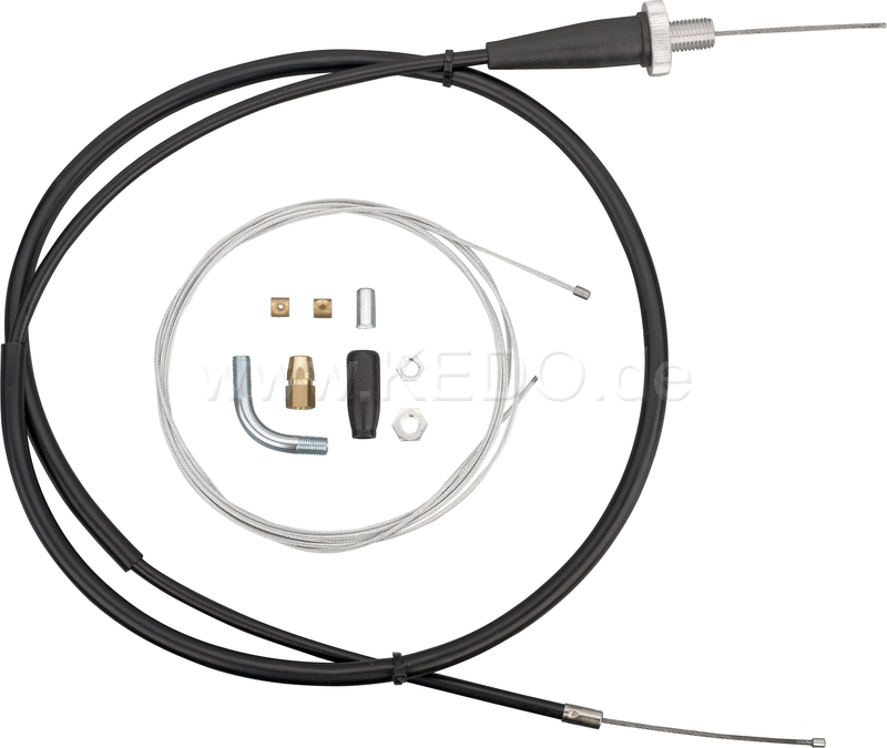 Kedo Throttle Cable Kit 'Do-It-Yourself' (100 ° Redirection Pipe with Adjuster, Sleeve with Adjuster, 2x Inner Cable, 2x Soldering Nipple, 1x End Cap) | 41184