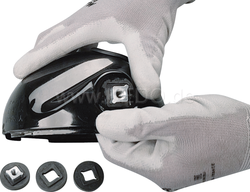 Kedo Headlight Mounting Set "Easy-Mount", 2x aluminum bushing with M8 thread / 4x rubber, for mounting the original metal and plastic headlight | 41588