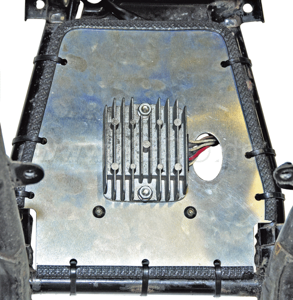 Race proven. This aluminum bracket offers space for the CDI-unit and regulator and other electrical components if needed