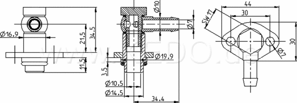 Kedo Oil Line Adapter (bottom), angled / 90 ° | 50161
