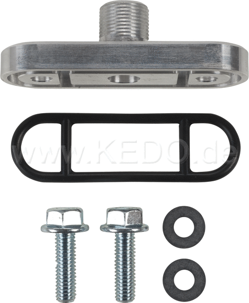 Kedo Fuel petcock adapter SR500 (OEM flange to M14x1, bolt distance 46mm) incl screws and gasket -> matching fuel petcock see item 29251/50597. | 50692