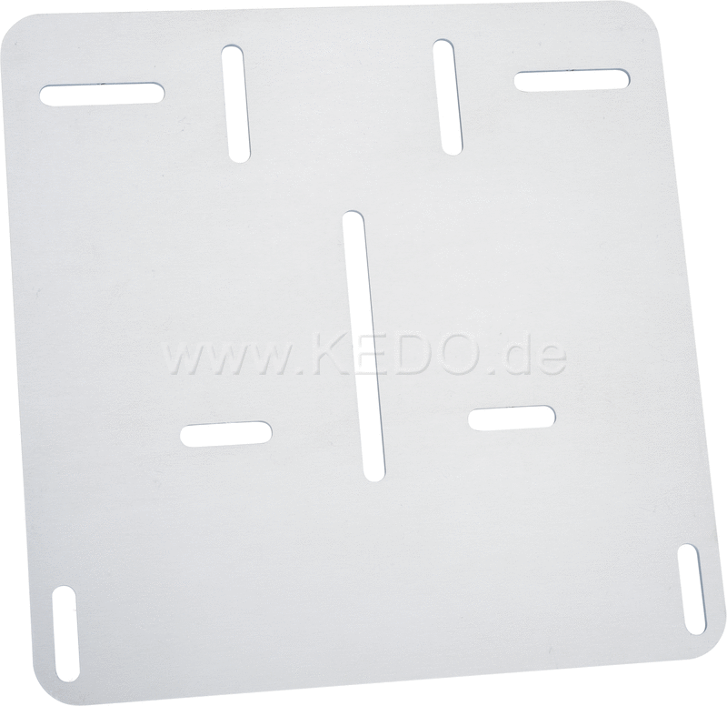 Kedo License Plate Reinforcement Plate for Euro license plate 20x20cm, aluminum 2mm, rounded, univ mounting thanks to various lasered mounting holes. | 60222