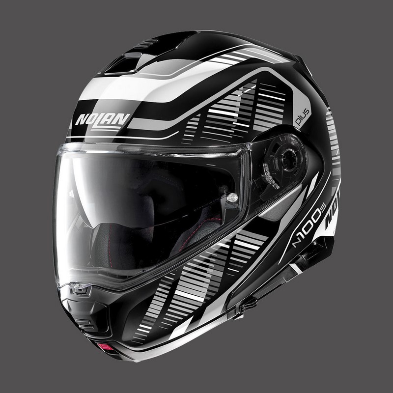 General Information: The latest and most exclusive version of Nolan’s top-of-the-range flip up helmet, here enhanced with Clima Comfort inner padding with its innovative net construction and adjustment system for the position of the liner (LPC-Liner Positioning Control). The new technical content is accompanied by asporty and elegant look and a complete style overhaul of the inner comfort padding. The consolidated technical features that make the N100-5 a highly appreciated product among the most demanding of motorbike tourists are all present: compact size (thanks to the availability of two outer shell sizes), double P/J homologation, ultrawide visor, VPS sunscreen (adjustable in various positions and fitted with the automatic retraction system), AirBooster Technology upper ventilation system, rotation of the chin guard with elliptical rotation, exclusive double-action chin guard opening mechanism, double lever Microlock2 retention system with micrometric adjustment, Clima Comfort inner padding (with micro-perforated fabrics and adjustable neck