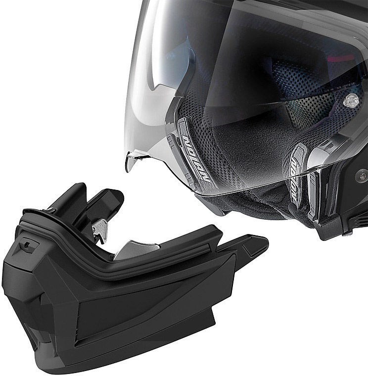 This is Nolan’s new top-of-the range road and off road crossover, the first on/off road helmet fitted with a removable protective chin guard on the market. It is characterized by an off road-inspired design, its many technical features and the ample range of colours and graphics available. Its compact size (thanks to the availability of two outer shell sizes), double P/J homologation, ultrawide visor, a particularly wide window compatible with mask use (even with the visor fitted and open), VPS sunscreen (adjustable to various positions and fitted with the automatic repositioning system), AirBooster Technology upper ventilation system, double lever Microlock2 retention system with micrometric regulation, innovative Clima Comfort inner padding (with micro-perforated fabric and adjustable neck-roll) and set up for the N-Com communication system make the N70-2 X the definitive on