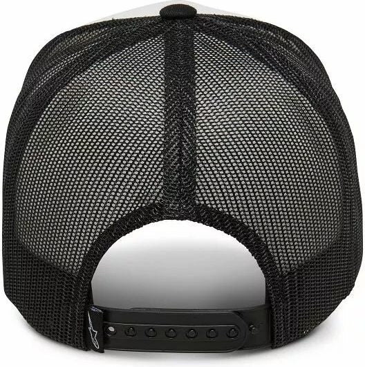 フロントはツイル素材、バックはポリメッシュ素材、スナップバッククロージャー。