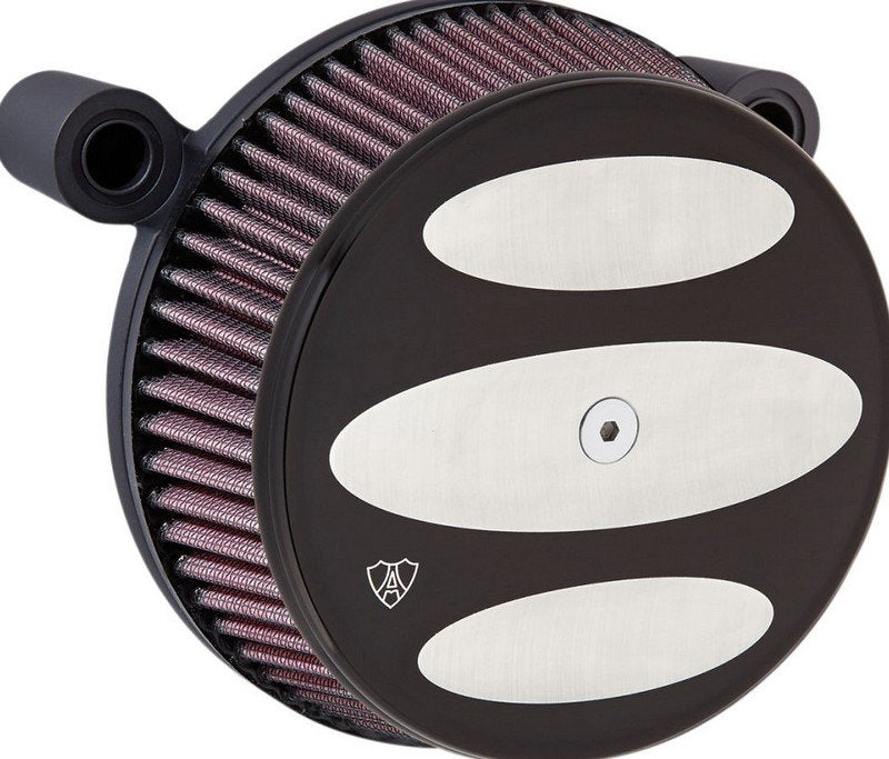 Big Sucker™ Stage I Air Filter Kit with Standard Filter特許取得済みの隠しブリーザーテクノロジーとラジアスエアインレットを備えた一体型アルミニウム製バッキングプレート/キャブサポートブラケットが特徴ですバンジョーフィッティング、ホース、フィルターが不要になりますブリーザー通路はキャブレター/スロットルボディの口元で出るため、実質的に閉ループシステムを構築しますキットには高性能フィルター、バッキングプレート、スチールアウターカバーを含みますすべての必要ハードウェアと説明書は各キットで提供します