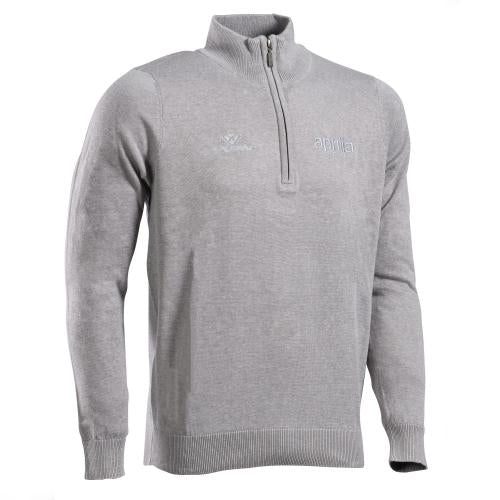 首元にジッパーが付いたメンズセーター。ロングスリーブ 胸の両サイドにトーンオントーンの刺繍。