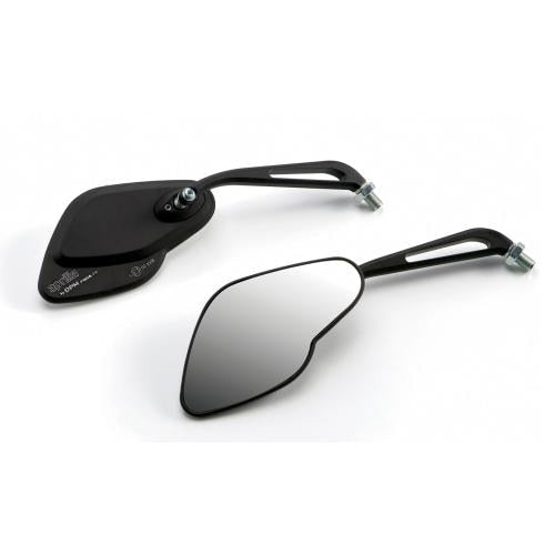 ビレットアルミニウム製のアクセサリー。最適な設定を可能にするフリクションマウントのアジャスタースクリュー。視認性に優れたコンベックスガラス。アプリリア・スタイルセンターとのコラボレーションによるデザイン。アプリリアの厳しい品質基準に基づき、社内でテストを実施。