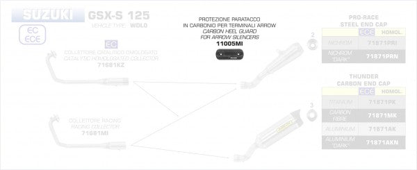 ARROW / アロー SUZUKI GSX-S 125 '17 カーボンヒートシールド | 11005MI