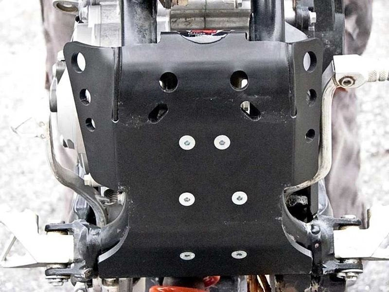 KTM 65SXのスキッドプレートです。2009 - 2017 KTM 65SX用に設計されたHDPEプラスチック製スキッドプレートです。モトクロス、スーパークロス、クラシックエンデューロでの使用に特化しています。6mm厚のポリエチレンから作られ、フレームの下側を覆い、エンジン下部とクランクケースを突起から保護します。アルミニウムと異なり、HDPEは衝撃を吸収し、変形せず、振動を発生させず、40%軽量です。エンジンスキッドプレートは消耗品のため、製品の早期破損の場合のみ保証されます。このモデルは、KTM 65SXにのみ適合します。警告このリファレンスは、すべての年式に適合するものではありません。