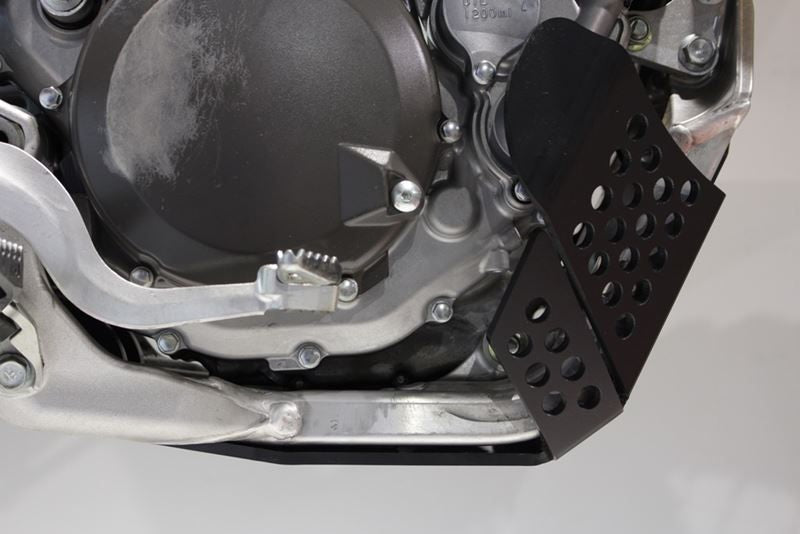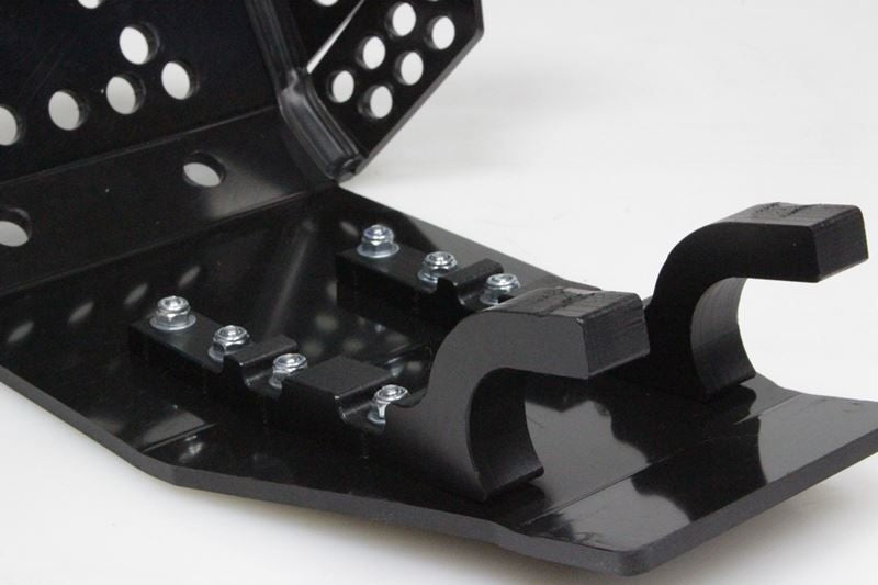 スズキ RMZ450 スキッドプレート。MX/エンデューロ用6mm厚HDPE樹脂製スキッドプレート。フレームの下側をカバーし、エンジンケースを岩の突起から保護します。合金製バッシュプレートより40%軽く、カーボン製エンジンガードより耐久性があり、プラスチックは振動を発生させず、変形を防ぐことができます。MXやソフトエンデューロでの使用を推奨します。ハードウェアキットが付属しています。あなたのバイクにフィットするかどうか確認するには :