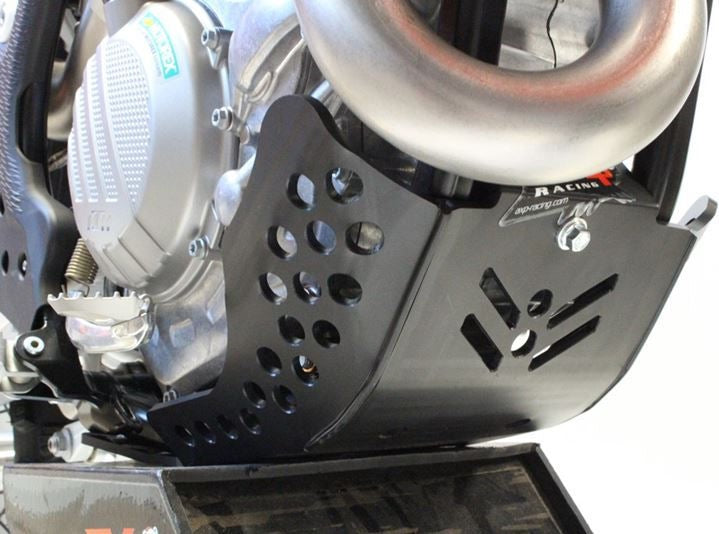 KTM 450 SX-F / XC-F / Husqvarna FC / FX450.重量 : 0.7 Kg.HDPE AXPプラスチックスキッドプレートは、モトクロス、スーパークロス、クラシックエンデューロ用に設計されています。6mm厚のポリエチレン製で、フレームの下側を覆い、エンジンとクランクケースを突起物から保護します。アルミニウムと異なり、HDPEは衝撃を吸収し、変形を受けず、振動を発生させず、40%軽量化されています。モータースキッドプレートは消耗品のため、製品が早期に破損した場合のみ保証されます。このプロテクションは、AX1507という名称でオレンジ色も用意されています。このモデルは、KTM 450SXF - 450XCF - 450SMRとHusqvarna FC450 - FX450にのみ適合しています。警告この参照は、すべての年のために互換性がありません。