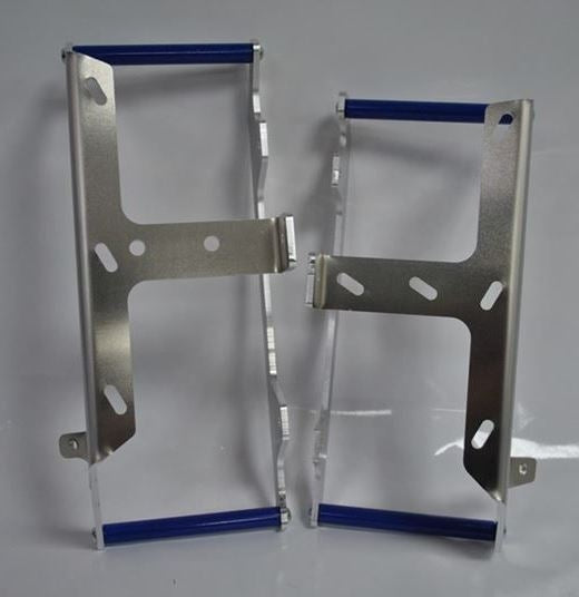 ヤマハ YZ125 ラジエターガード。重量 : 0.7 Kg.4mm厚のアルミ板から切り出され、軽量化されたAXPのラジエーターガードは、前2点、後ろ1点の計3点で取り付けられます。このデザインは、ゆっくりとした転倒の場合にはラジエーターを横方向に保護し、高速の衝撃の場合にはラジエーターの巻き戻りを防止することができます。このガードは、取り付けに必要なすべてのハードウェアとともに、両サイドに付属しています。注:当社のラジエーター補強は、ダメージを最小限に抑えることができます。ラジエーターが変形する可能性がありますが、保証するものではありません。ヤマハ YZ125 - YZ125X - YZ125E で設計されたモデルです。注意:すべての年式で使用できるわけではありません。