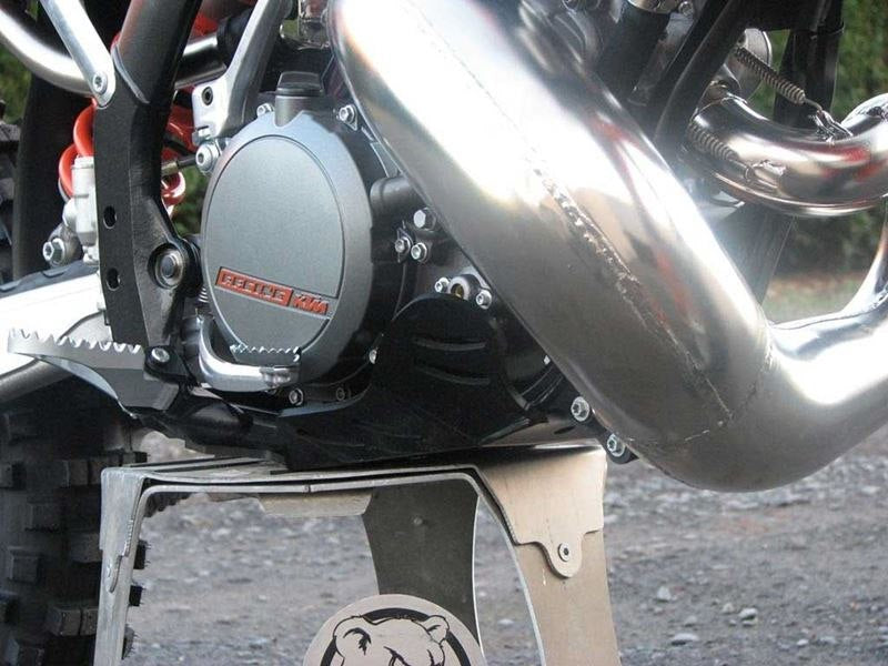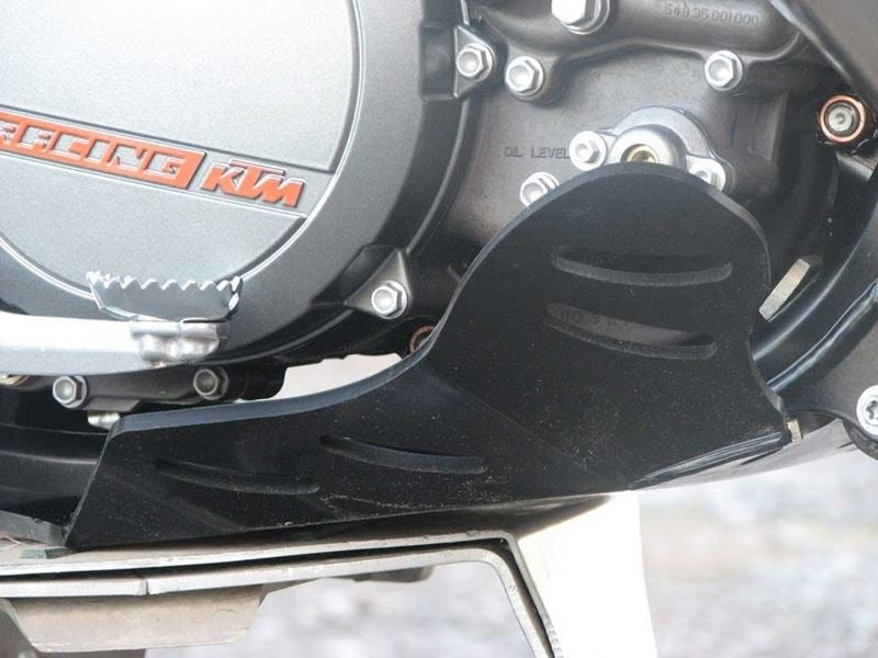 KTM 250 / 300EXC スキッドプレート。HDPE AXPプラスチック製スキッドプレートは、モトクロス、スーパークロス、クラシックエンデューロ用に設計されています。6mm厚のポリエチレン製で、フレームの下側を覆い、エンジンやクランクケースを突起物から保護します。アルミニウムと異なり、HDPEは衝撃を吸収し、変形を受けず、振動を発生させず、40%軽量化されています。エンジンスキッドプレートは消耗品のため、製品の早期破損の場合のみ保証されます。このモデルはKTM 250EXC - 300EXCにのみ装着可能です。警告このリファレンスはすべての年式に対応するものではありません。
