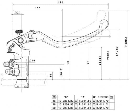 ラジアルブレーキマスターシリンダー BREMBO 19x16 CNC