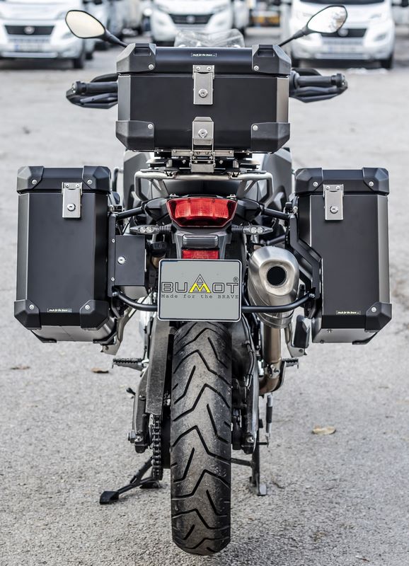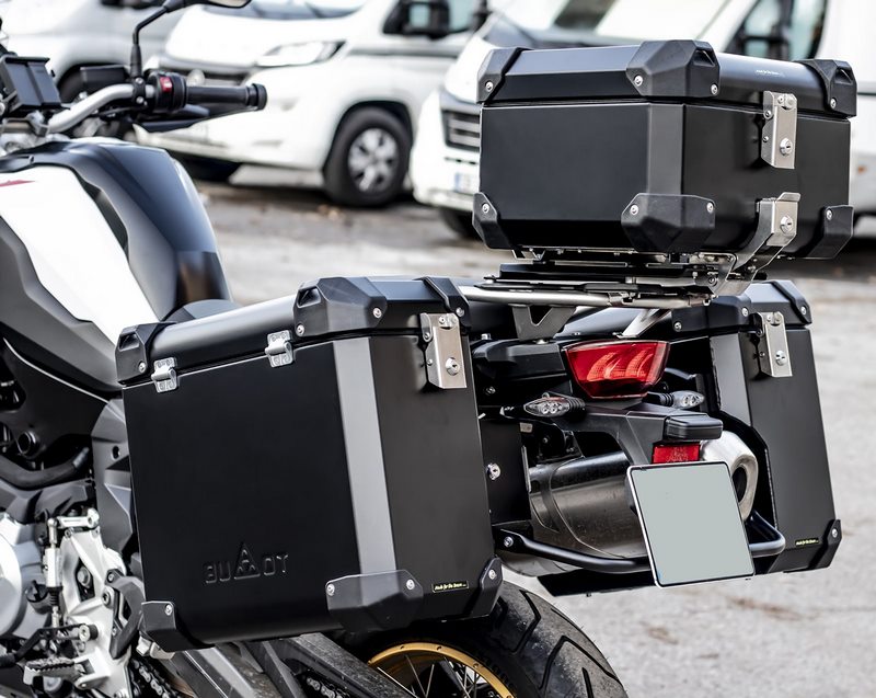 · Low profile polyamide nylon lid strap brackets (tested to 200 pounds each) for better pillion comfort and less square edges if the bike goes over