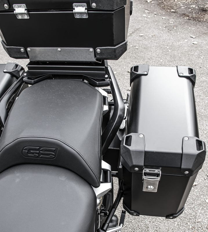 The top case mounting plate is made from 3mm steel and provides quick release functionality to install a BUMOT 30L or 43L top case. All hardware to mount the top case mount to the bike, as well as mount the top case to the mounting plate is included. Powdercoated black.